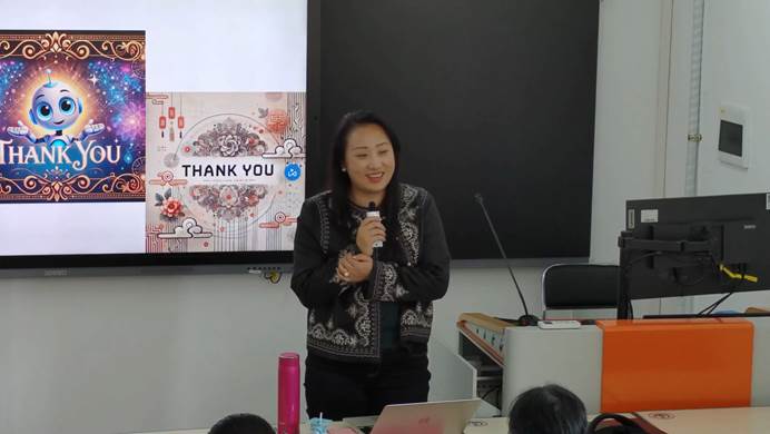 随后,第五教学部党支部教师党员邓谊带来“党建引领下的科研探索——AI驱动的多模态研究新路径”专题报告。邓谊深入探讨了 AI 图像处理的发展历程,详细介绍了其识别与生成能力。她特别强调了 AI 生成图像在教学中的辅助作用,通过实际案例展示了这些图像如何有效提升员工的参与度,为课堂教学注入新活力。同时,邓谊理性指出,AI 生成内容存在可能的社会偏见问题,提醒在场师生在使用相关技术时保持警惕。最后,她鼓励教师们积极交流与合作,借助 AI 技术实现教育创新。