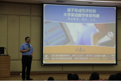 刘建达在开幕式致辞中对到场的省内各兄弟院校表示感谢。他在主题报告中,从理论框架到教材、到手段等方面详细介绍了基于形成性评价的大学英语教学体系构建。据了解,刘建达早在2010年已经开始研究并提倡形成性评价的教学理念,如今这一教学理念已经在公司的大学英语教学改革中实践多年,取得一定成效,并在全国逐步获得推广。