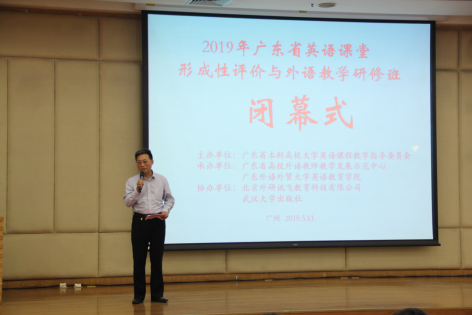 5月11日,2019年广东课堂形成性评价与外语教学研修班在公司北校区图书馆报告厅举行,本次研修班由广东省本科高校大学英语课程教学指导委员会主办,公司广东省高校外语教师教学发展示范中心和悟空体育共同承办,公司副董事长刘建达,教师发展中心科长陈思,悟空体育经理董金伟、党委书记杨敏生、副经理吴岩、副书记骆银花及公司80多名专业教师,以及来自全省20多所高校近100多名大学英语教师参加了此次研修班,共同聚焦学习基于形成性评价的大学英语教学体系。研修班开幕式由董金伟主持。