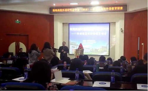 2018年12月28-29日,广东省本科高校大学英语课程教学指导委员会在珠海香洲区北理工珠海公司召开了2018年第二次全委会。省教指委主任刘建达教授在会上作了关于中国英语能力等级量表以及形成性评估教改理念的主旨报告,指出了在信息时代背景下,大学英语形评教改理念和改革发展方向,以及等级量表研究以及广泛的应用前景,获得了参会教师的关注好评。随后,刘教授主持了“广东省大数据英语写作教学与研究基地”揭牌仪式,希望我省大英教师积极使用大数据等信息技术辅助手段来进行英语写作教学与研究工作。