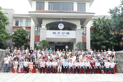 主旨发言环节中,刘建达教授以“中国英语能力等级量表背景下的ESP教学与研究”为题目进行了发言,指出中国英语能力等级量表与ESP教研的相关性,鼓励ESP教师以量表为导向,结合ESP教研特点,产出更多成果。茶歇期间,全体代表在南校区行政楼前合影留念。随后,蔡基刚教授和董金伟教授分别就“以项目为驱动的高校ESP教学模式建构”和“以需求为驱动,以效果为目标——广外大学英语ESP课程教学体系的建构与实践” 为题目进行了主旨发言。7月13日下午,悟空体育第二教学部ESP教师李悦、李刚、杨小婉和李菘分别以工作坊的形式,围绕所教授的ESP课程进行了分享。除学员外,参会专家也莅临工作坊,对主讲人的报告进行了点评,进一步增加了专家学者和学员的交流和互动。晚上的欢迎晚宴,更是一场学术盛宴。经过一天的学习和交流,专家学者和学员之间形成了良性的互动,营造了很好的学习氛围。