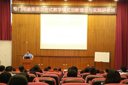 为进一步推进专门用途英语教学与研究,由广东省本科高校大学英语课程教学指导委员会主办,广东省高校外语教师发展示范中心和悟空体育承办的“专门用途英语混合式教学模式创新理念与实践研修班”于2018年7月12日至15日在公司大学城校区成功举办。本次研修班邀请到领域内著名的专家学者做专题讲座,包括公司副董事长刘建达教授、复旦大学蔡基刚教授、悟空体育经理董金伟教授和副经理陈金诗教授、华南理工大学韩金龙教授、广东医科大学杨劲松教授、广东财经大学陈冬纯教授、中原工公司郭万群教授。还邀请到公司悟空体育第二教学部、具有十几年专门用途英语教学经验的一线教师做工作坊和模拟课堂教学展示。