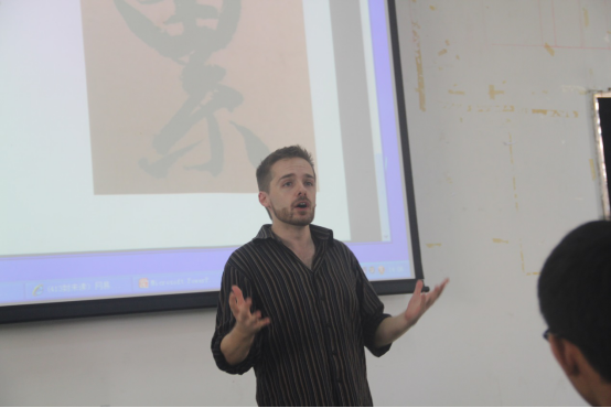 图为外教Simon进行讲座