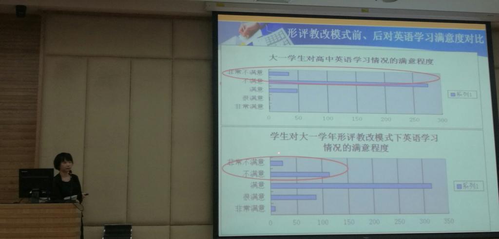 梁丽老师从教改实践对员工的影响方面进行了汇报。通过分析员工的调查问卷发现,员工对形成性评估的教改和实践表现出很高的满意度。在形成性评估课程币激励机制下,员工在课堂上的表现显得更加积极,如主动举手发言。从员工在留言板的反馈中可以看出,大部分同学对形成性评估对教学实践持积极肯定的态度。