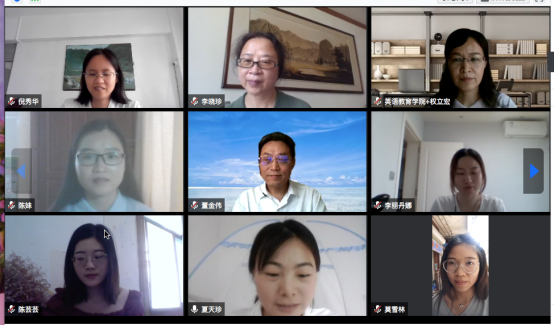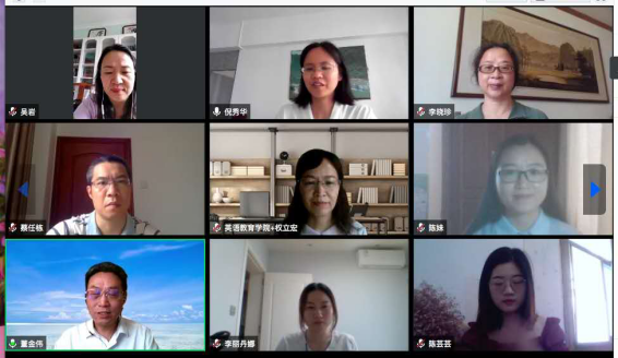 2020届英语教育硕士研究生答辩委员会由六名专家组成,他们分别是:董金伟教授、权立宏教授、柯晓玲副教授、李晓珍副教授、蔡任栋副教授,以及校外专家广州大学倪秀华副教授组成,阵容强大,学科方向多样。视频答辩会严格按照线下的答辩流程进行,全程录像,各个环节有序推进,整个答辩过程清晰流畅,包括论文陈述、提问、回答、讨论和无记名投票等与线下答辩相同的程序,答辩委员在充分讨论的基础上通过了答辩决议,并由答辩主席当场宣布结果,一致通过了夏天珍、陈妹、李丽丹娜、吕晓佳、陈芸芸、莫雪林,共计六位同学的答辩,全程共历时7小时。在此过程中,各位老师及同学纷纷展现出极强的专业精神,答辩委员们全程7个小时内认真倾听记录提问,直到下午四点答辩全过程结束才可以休息吃午饭。同学们也是纷纷克服困难全程参与答辩,2017级英语教育专业吕晓佳同学,去年八月成功申请为期一年的留基委美国马里兰大学项目,身在美国,克服时差参加答辩,答辩结束已经是美国当地时间凌晨三点。同学们认真的态度也令各位委员欣喜,一位答辩委员表示,相比于之前参与的几场答辩,悟空体育的同学们最为认真。