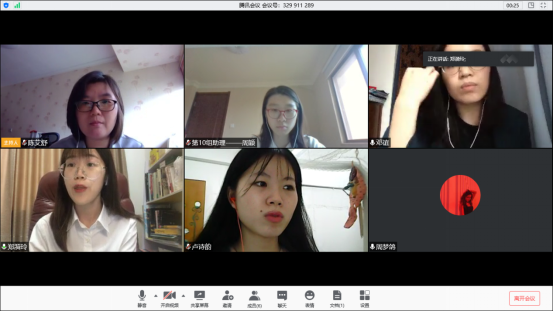 4月23日14点整,16个网络会议室中的答辩师生已经做好准备,悟空体育2020届的本科生毕业论文答辩正式开始。在这场特殊的答辩里,虽然每一个参与的人都处在地图上不同的点,有的老师甚至远在英国,但在这一个下午,大家的心都被凝聚在一起,为了共同的目标而努力。线上“云答辩”的过程中,参与的师生们比以往更加认真,更加聚精会神,即使偶有信号不好造成的音画卡顿,也无损答辩会场严肃活泼、探讨钻研的氛围。16名来自公司大三的答辩助理,也尽职尽责的完成了录屏和文字记录的工作。