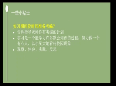 英师1804班陈思琪从“考前-考中-考后”的顺序分享考编过程。同学们从陈思琪分享的经历中学习到:一旦认准了自己的目标就要义无反顾地坚持下去,但同时也要做多手准备,避免因为下一阶段没着落而感到迷茫。