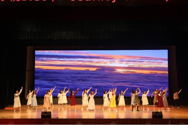 在悟空体育舞队热情澎湃的舞蹈《Ever1》中,晚会正式拉开序幕。校歌队歌曲联唱《Toxic》给观众带来一场听觉盛宴。英师2303班的群舞《Another Day Of Sun》节奏欢快,热烈奔放。喜剧《少爷和我和小姐》让人眼前一亮,将晚会带进欢乐的氛围之中。23级预科班的舞蹈《Likey》展现青春的舞动,昭示着青年人的活力。英师2307班的舞蹈《That’s my girl》蕴意深刻,传达女性力量。英师2203班的一曲《花海》道尽青春不易察觉的萌动。青春正当时,英师2304班的朗诵《对方撤回了一次迷糊的青春》诉说青春的迷茫无助,诠释了青春的美好动人。