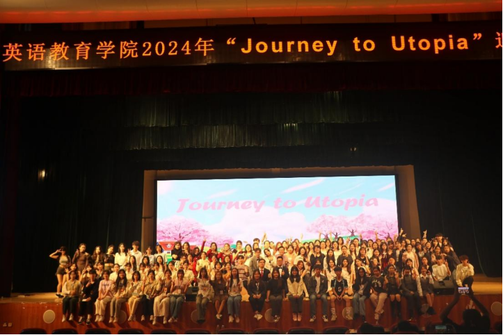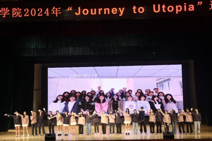 年序更替,华章日新,不知不觉间,2023年已接近尾声,2024年即将到来。为迎接2023级新生以及新年的到来,英语教育公司于12月14日晚在南校区大会堂举办2024年“Journey to Utopia”迎新晚会。英语教育公司党委书记骆银花、副经理张倩、副经理李惠胤、副经理刘亮星、党委副书记罗诞铖、师范系主任谢剑萍、团委书记刘博洋、22级辅导员周靖凯及23级辅导员李敏嘉出席本次活动。