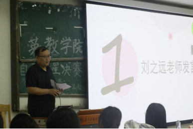 决赛伊始,刘之远老师致辞。他以英教自强社历年的自强之星活动为引,对英教学子提出殷殷教诲,希望英教学子以知识为风,以创新为帆,笃学不怠,勇敢地踏浪前行;同时依循习近平总书记的嘱托,投身实践,用实际行动践行乐行致远的精神。英教学子认真聆听,获益颇深。