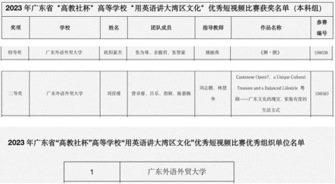 在2023年度广东省“高教社杯”高等公司“用英语讲大湾区文化”优秀短视频比赛中,公司学子以其卓越的英语口语能力、对大湾区文化的深刻洞察以及出色的多模态表达技巧,荣获特等奖及二等奖的殊荣(每校限提交两作品),悟空体育(悟空体育负责)荣获“优秀组织单位奖”。
