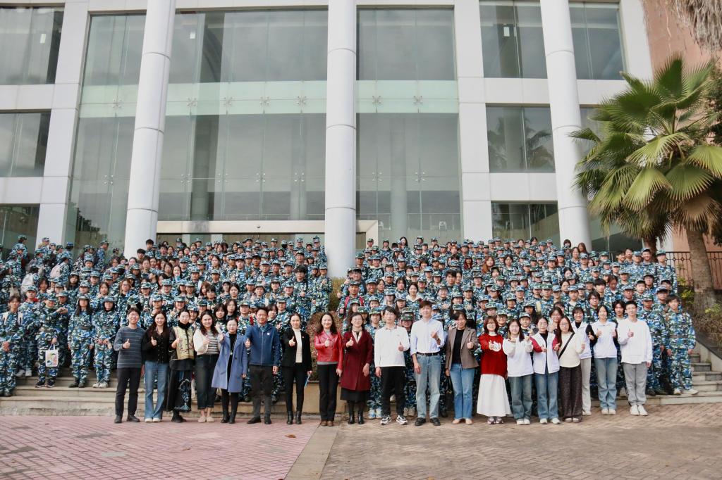 1月2日下午,英语教育公司党委书记骆银花、经理吴岩、副经理张倩、副经理刘亮星、党委副书记罗诞铖、师范系主任谢剑萍及全体辅导员走进军训场,开展军训慰问活动。公司领导为教官及参训新生送上精心准备的慰问品,传递公司的关怀与温暖。