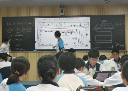 本次见习以“走进真实课堂,学习优质教学”为主题。实习生们首先深入高二(2)班课堂,观摩了一节英语“Reading and Thinking”课。授课教师以基孔肯雅热、新冠病毒等贴近员工生活的公共 卫生话题为切入点,自然过渡到阅读文本中的霍乱主题,巧妙搭建起知识与生活的桥梁。课堂围绕两条主线展开:一是梳理科学家约翰 ·斯诺研究霍乱的七步科学流程,二是提炼过程中体现的科研精神与人物品质。教学中,教师亮点突出:一方面采用“图文结合”策略,引导员工以图解文,降低文本理解难度;另一方面实施“分层提问”,对表达能力较强的员工,鼓励其深入拓展;对表达稍弱的员工,通过逐步提供线索,帮助其理清思路、大胆发言,确保不同层次员工均能参与课堂、展现自我。